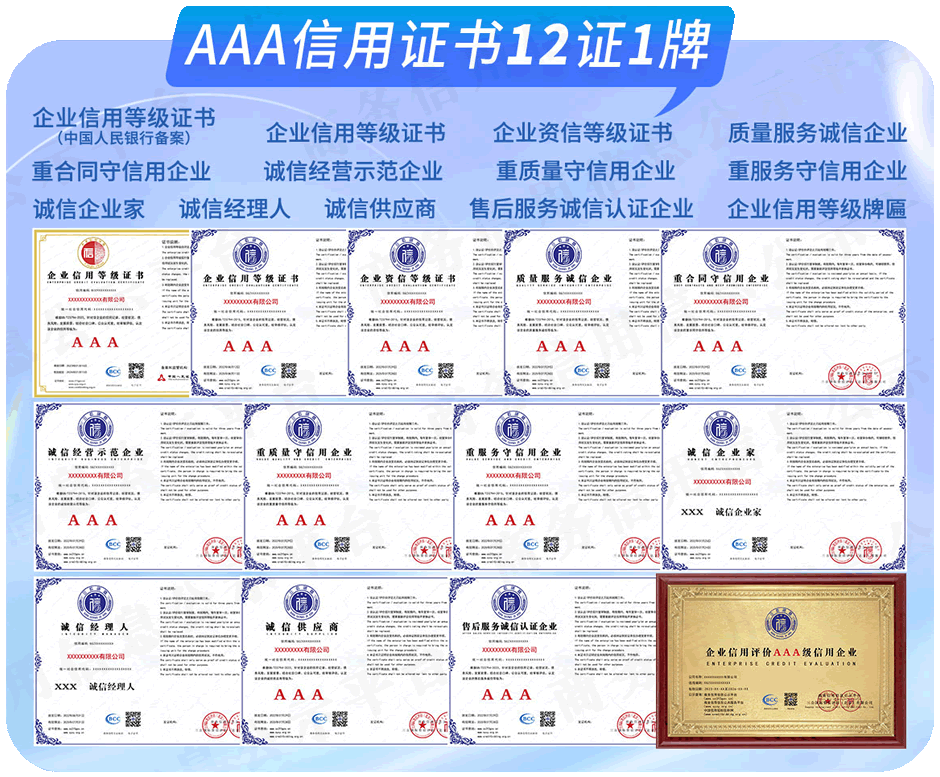 基础8证+诚信供应商+售后服务诚信认证企业